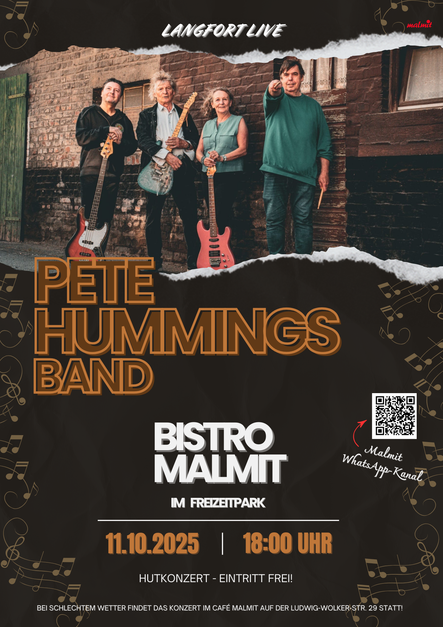 11. Oktober : 18:00 - 22:00 Konzert der Band Pete Hummings Bistro Malmit - Freizeitpark Langfort Zum Stadion 93, Langenfeld